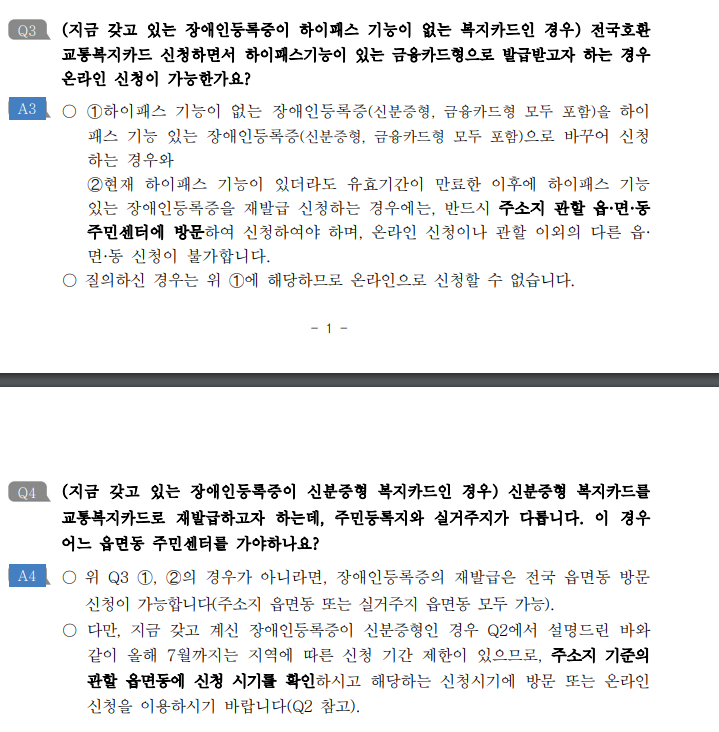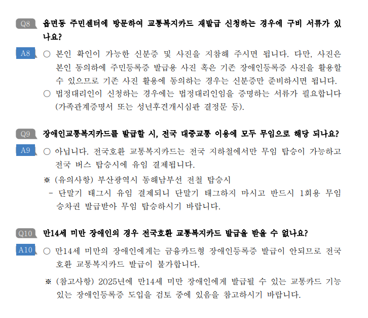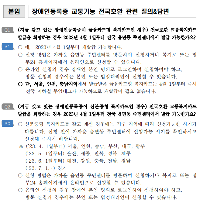 장애인등록증 교통기능 전국호환
